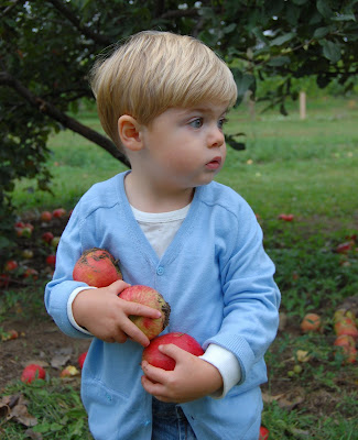 A fun time was had by all at the apple orchard, which also just happens to be the St. Croix Valley Vineyard...which means you can eat apples accompanied by a bottle of Minnesota wine! Being savvy to the situation, my diaper bag contained a Swiss Army knife w/ cork screw, plastic cups, Carr's Table Water crackers, goat cheese from Costco, string cheese for Marly & Dean...oh.. and bottled water for them. I suspect the vineyard has turned out to be a brilliant marketing tool and investment for the apple orchard owners! Jenny & Jeremy joined us as they did last year. This year new edition 12-week-old Vivian was inaugurated to the activities. Despite the clouds, we had a very nice afternoon.